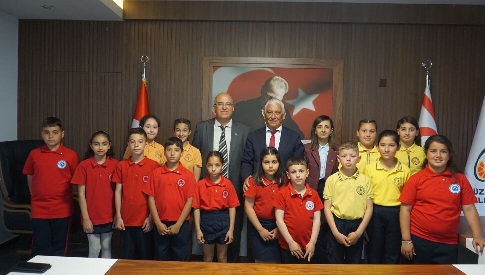 23 Nisan Ulusal Egemenlik ve Çocuk Bayramı kutlamaları çerçevesinde öğrencilerden oluşan heyet Güzelyurt Belediye Başkanı Mahmut Özçınar’ı ziyaret etti.
