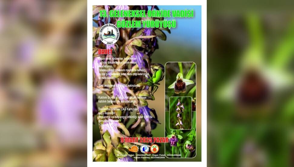 Denizli- Gemikonağı Kalkındırma Derneği’nin düzenlediği 13’üncü “Geleneksel Orkide Gözlem Yürüyüşü” pazar günü yapılacak.