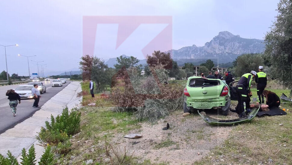 Polis Basın Subaylığı'ndan kazaya ilişkin yapılan açıklamada, bugün saat 16.30 sıralarında, Girne - Alsancak Çevre Yolu üzerinde, 71 yaşındaki Gülçin Erkmen'in yönetimindeki LV 233 plakalı salon aracı ile Alsancak istikametine doğru seyrettiği sırada Karmi çemberi yakınlarında direksiyon hakimiyetini kaybedip yolun solundan çıkarak zeytin ağacına çarpıp takla attığı bildirildi.