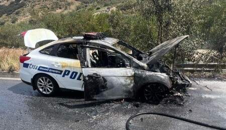 Girne - Değirmenlik Anayolu üzerinde seyir halinde bulunan Girne Polis Müdürlüğü Trafik Şubesine ait araçta çıkan yangın, sürücünün müdahalesi ve itfaiye ekiplerinin çalışmalarıyla söndürüldü. Yangının çıkış nedeni araştırılıyor.