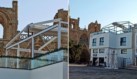 İşletmenin, söz konusu binada, projeye aykırı olarak teras yapımına başladığı anımsatılan açıklamada, “hafif strüktürlü kaçak kat, sivil toplum örgütleri ve Eski Eserler Dairesi (EED) Mağusa Şubesi’nin itirazları sonucu kaldırılmıştı” denildi.