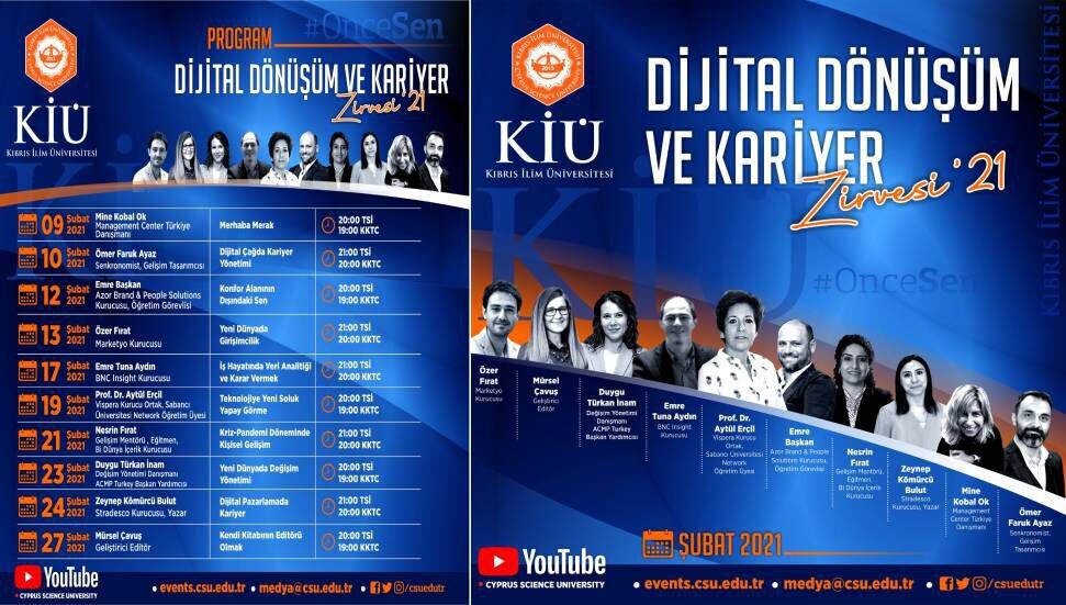KİÜ, güncel başlıklar çerçevesinde, alanında uzman 10 konuktan oluşan 'Dijital Dönüşüm ve Kariyer Zirvesi ‘21’ projesini hayata geçiriyor.