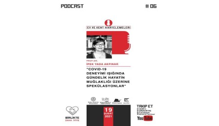 DAÜ KEDAM ve DAÜ KENT-AG “Ev ve Kent Hikayelemeleri” podcast serisinin 6.’sı, değerli Mimar ve Akademisyen Prof. Dr. İpek Yada Akpınar’ın “COVID-19 Deneyimi Işığında Gündelik Hayatın Muğlaklığı Üzerine Spekülasyonlar” başlıklı sesli sunumu ile yapıldı.