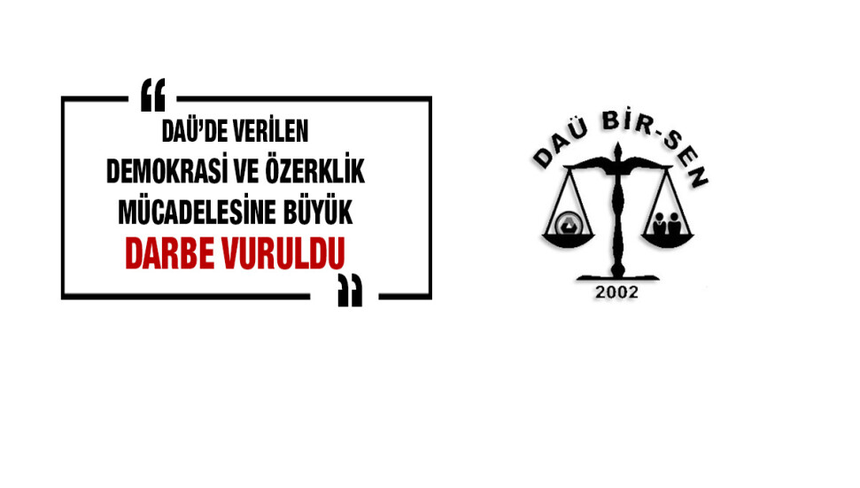DAÜ BİR-SEN'den yapılan açıklamada, üniversitelerin demokratik ve özerk bilim yuvası olması gereken yer olduğuna dikkat çekilerek, "Doğu Akdeniz Üniversitesi de bu yönde yıllardır mücadele eden bir kurumdur. Siyasete alet edilen bir üniversite için demokratik ve özerk yapıdan söz etmek mümkün değildir" denildi.