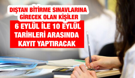 Milli Eğitim ve Kültür Bakanlığı tarafından yapılan açıklamada, 2020-2021 yılı güz dönemi 'Dıştan Bitirme Sınavları' 15 Eylül ile 1 Ekim tarihleri arasında yapılacağı bildirildi.