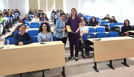 Seminer sonunda DAÜ Hemşirelik Bölümü Başkanı Prof. Dr. Sevinç Taştan tarafından Meryem Yarseven’e plaket takdim edildi.