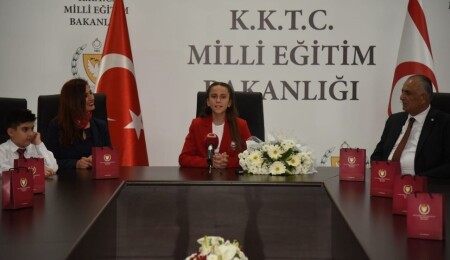 9 Eylül İlkokulu Müdürü Elçin Altan başkanlığında Lefkoşa, Gazimağusa, Girne, Güzelyurt, Lefke ve İskele’den 16 öğrenci Milli Eğitim Bakanı Nazım Çavuşoğlu’nu ziyaret etti.