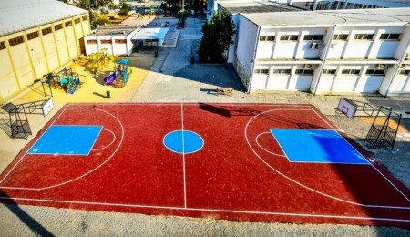 Gönyeli İlkokulu’nda kullanılamaz durumda olan açık basketbol sahası yenilendi