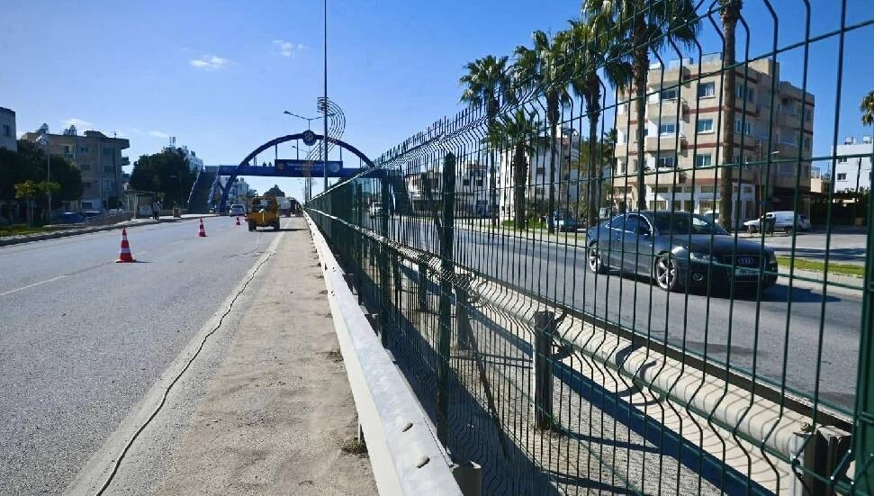 Gönyeli-Alayköy Belediyesi, Lefkoşa-Güzelyurt ana yolu İrmar Market bölgesinde yayaların kontrolsüz geçişini önlemek amacıyla başlattığı 2,5 kilometrelik bariyer yapımını tamamladı.