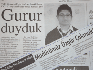 Bu öğrencimizin haberde de geçtiği gibi Atlas Dershanesi'ne devam ettiğinin de haberde yer almasında elbette bir sakınca yok.