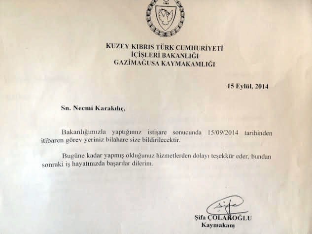 Bilinen tek şey 1'nci derece ilçe müfettişi Necmi Karakılıç'ın artık Mağusa Kaymakamlığında görev yapmayacak olması