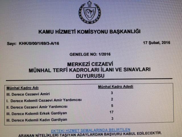 Öncelikle Kamu Hizmeti Komisyonu'nun dün Merkezi Cezaevi'nde açtığı münhal iptal edilmelidir!