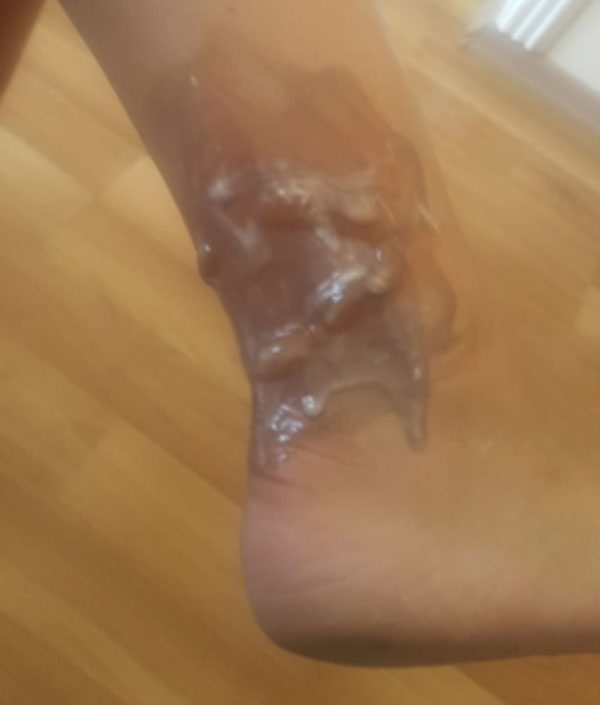 Durumu gören yakınları anında müdahale etmişler ama sonuçta alev bu, etkisini çabuk gösterip önce ayakkabısı sonra da ayağının bir bölümü yanmış