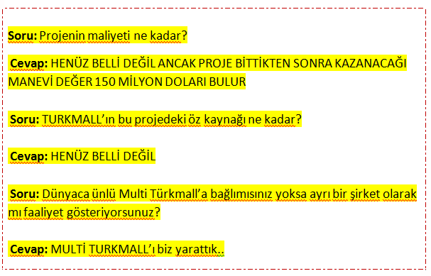 Evet..CEO Levent beyden aldığım cevaplardı bunlar. Öz kaynağı belli olmayan, projenin ederi belli olmayan bir alış veriş merkezi yapılacak..Arkadaşlar bu işte bir iş var!!!