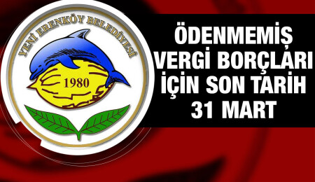 Yenierenköy Belediyesi yayımladığı bir duyuruda yüksek miktarda ödenmemiş su, temizlik, sağlık ve emlak vergisi olan üyelerin 31 Mart 2022 tarihine kadar belediyeye ödeme yapmaları gerektiği konusunda çağrıda bulundu.