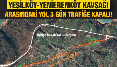 Yeşilköy Kavşağı–Yenierenköy Kavşağı arasındaki yol bugünden itibaren üç gün trafiğe kapalı olacak
