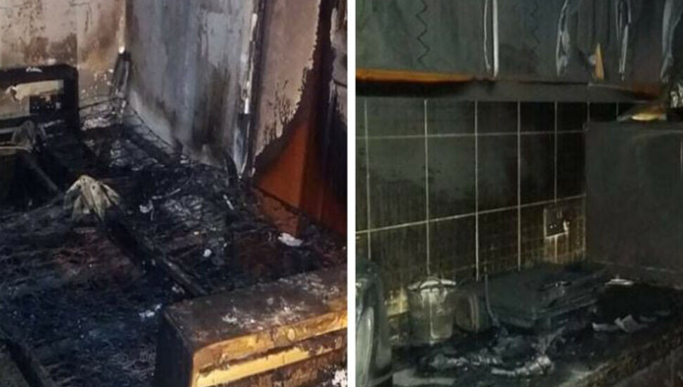 Yangın sonucu mutfak içerisinde bulunan eşyalar kısmen yanarak zarar gördü.