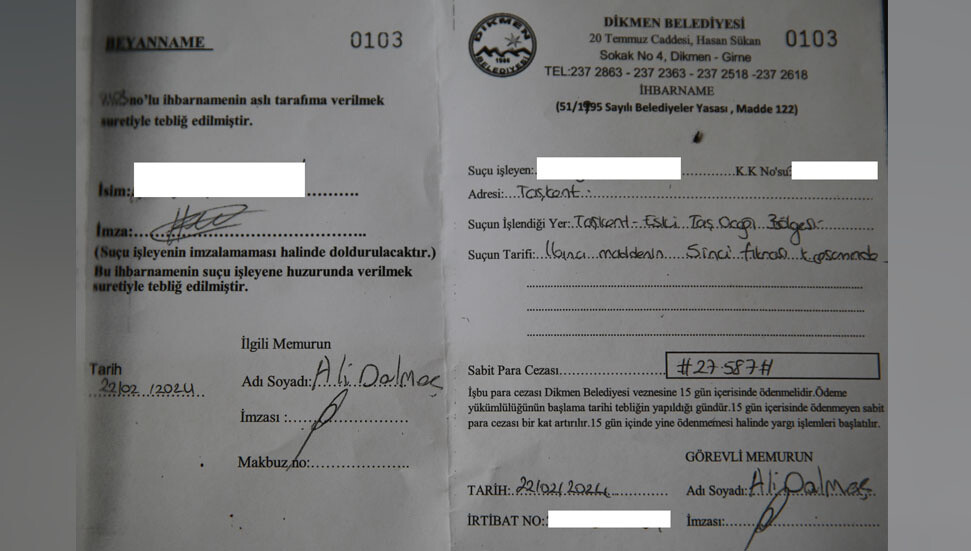 Dikmen Belediyesi Zabıta ekipleri tarafından söz konusu şahsa 27 bin 587 TL para cezası kesildi.