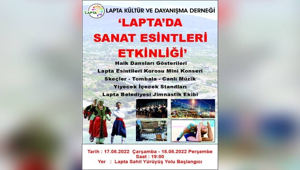Lapta Kültür ve Dayanışma Derneği tarafından düzenlenen "Lapta'da Sanat Esintileri" adlı etkinlik yarın yapılacak.