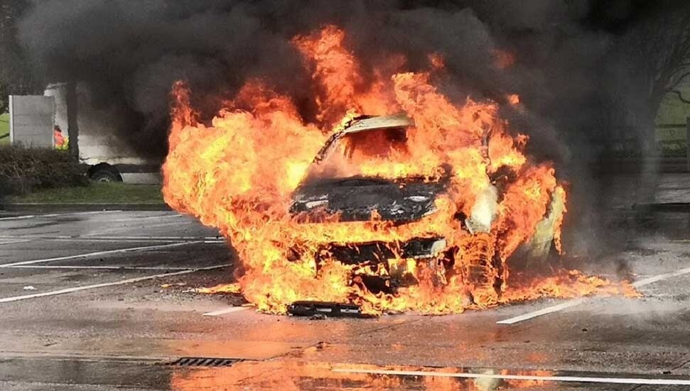 Göçmenköy’de dün akşam, Büşra Boz’un kullanımındaki FZ 465 plakalı araç, seyir halinde olduğu sırada, muhtemelen aracın ön göğüs kısmındaki elektrik aksamlarının kısa devre yapıp alevlenmesi sonucu yandı.