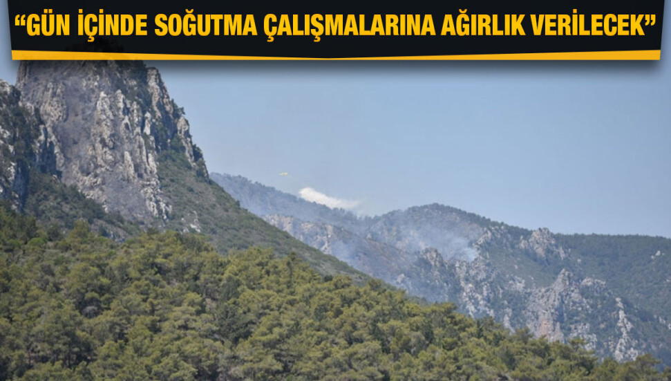 Yangının söndürülen bazı alanları arasında ekipler soğutma çalışması yapıyor. Bölgede güneyden gelen polis helikopterinin söndürme çalışmalarına destek veriyor.