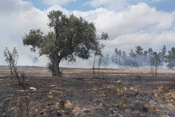 Geçitkale-Akova köyleri arasında meydana gelen yangın söndürüldü. Yangında anız, biçilmemiş buğday ekinleri, rulo balyalar ile ağaç fidanları yanarak zarar gördü.