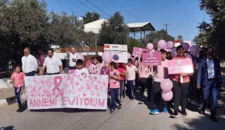 Geçitkale Belediye binası önünden başlayan ve meydanda sona eren etkinliğe katılanlar, pembe tişörtler giyip, ellerinde pembe balonlar taşıdı ve pankartlarla farkındalık mesajı verdi.