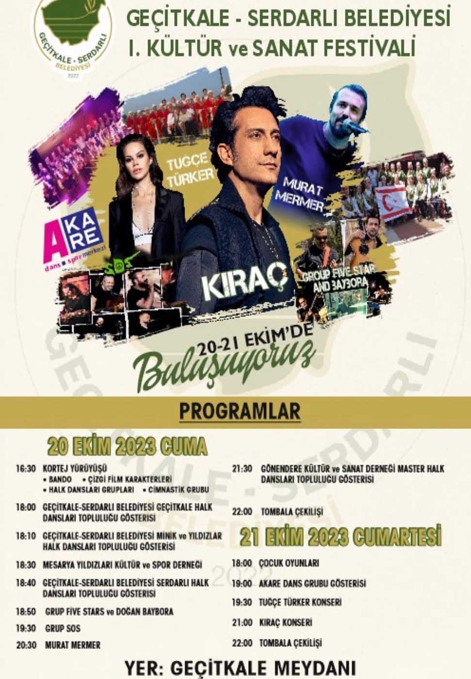 1. Geçitkale-Serdarlı Belediyesi Kültür ve Sanat Festivali 20 Ekim Cuma günü yapılacak.