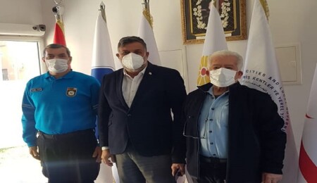 Sivil Savunma Teşkilat Başkanlığı Gazimağusa Bölge Müdürü Kamil Ağcabay, Beyarmudu Belediye Başkanı İlker Edip'i makamında ziyaret etti.