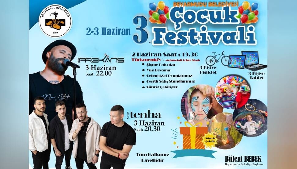 Beyarmudu Belediyesi 3. Uluslararası Çocuk Festivali bu akşam başlıyor.