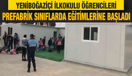 Yeniboğaziçi İlkokulu’nda öğrenim gören öğrenciler, okul bahçesinde hazırlanan prefabrik sınıflara yerleştirildi.