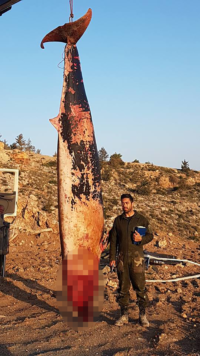 Taşkent Doğa Parkı, hayatını kaybedip karaya vuran ve Çatalköy Belediyesi tarafından gömülen 4 metrelik Yunus balığını otopsi yapmak amacıyla gömüldüğü yerden çıkardı.
