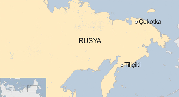 Rusya'nın Kamçatka yarımadasındaki bir köyde, buz parçası üzerinde 700 kilometre sürüklendiği tahmin edilen bir kutup ayısı bulundu.