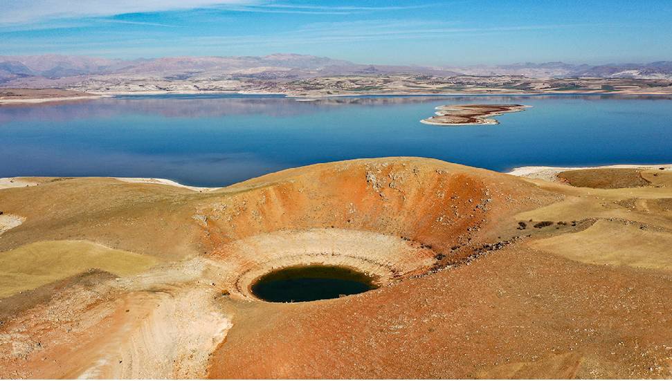 Keban Baraj Gölü'nde suların çekilmesiyle dev obruk ortaya çıktı