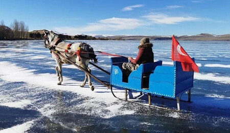 Kars ve Ardahan arasında bulunan Çıldır Gölü 27 Aralık'tan itibaren etkili olan soğuk havayla dondu. Yüzeyi buzla kaplanan gölde atlı kızak seferleri de başladı.