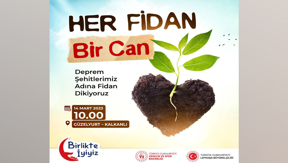 Türkiye Gençlik ve Spor Bakanlığı ile Türkiye’nin Lefkoşa Büyükelçiliği iş birliğiyle “Her Fidan Bir Can” sloganıyla, Güzelyurt Kalkanlı’da deprem şehitleri için ağaç dikimi yapılacağı bildirildi.