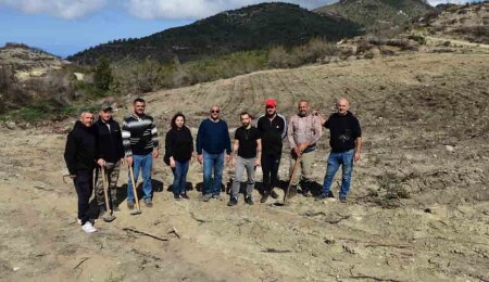 Gençlik Dairesi Müdürü Hakan Özsaygın ve daire personeli Kantara’da “Şampiyon Melekler Takımı" anısına 800 fidanı toprakla buluşturdu.