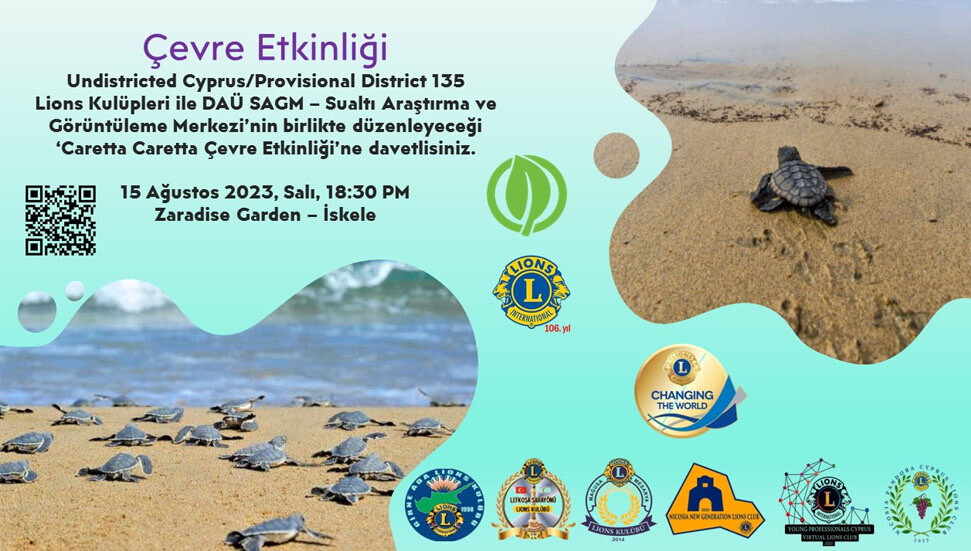 Kuzey Kıbrıs'taki Lions Kulüpleri ve Doğu Akdeniz Üniversitesi SAGM - Sualtı Araştırma ve Görüntüleme Merkezi, 15 Ağustos Salı akşamı saat 18.30'da İskele Zaradise Garden'da caretta etkinliğini birlikte gerçekleştirecek.