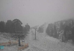 Öte yandan Trodos Dağları'nda etkili kar yağışı, bembeyaz bir manzaranın ortaya çıkmasını sağladı.