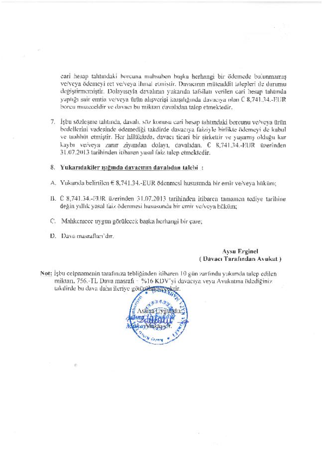 10 Nisan 2015 Lefkoşa Kaza Mahkemesi Celpnamesi.