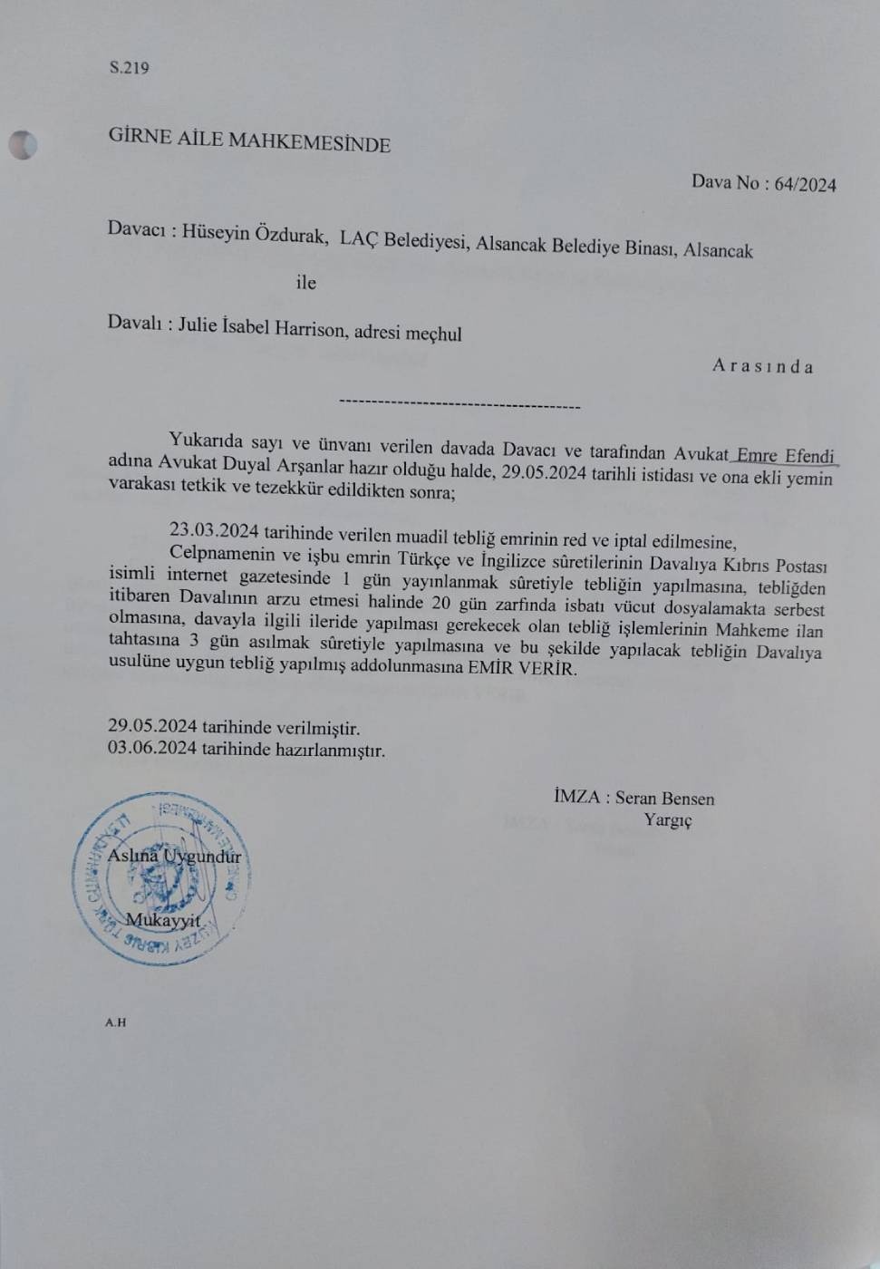 Girne Aile Mahkemesi-Dava No: 64/2024
