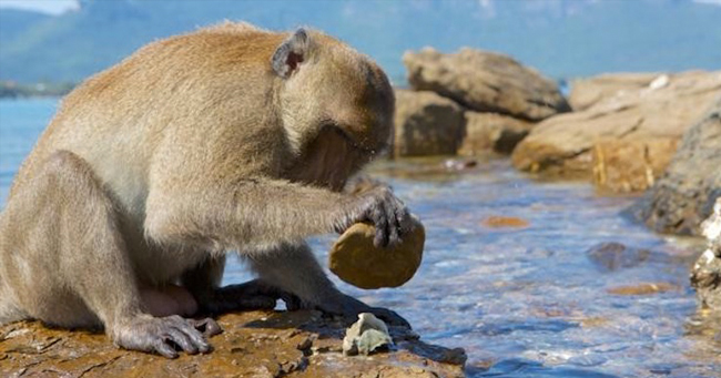 Onlardan farklı olarak, makaklar adalarda yaşıyor, ve taşlarını deniz kabuklularını kırıp açmak için kullanıyor.