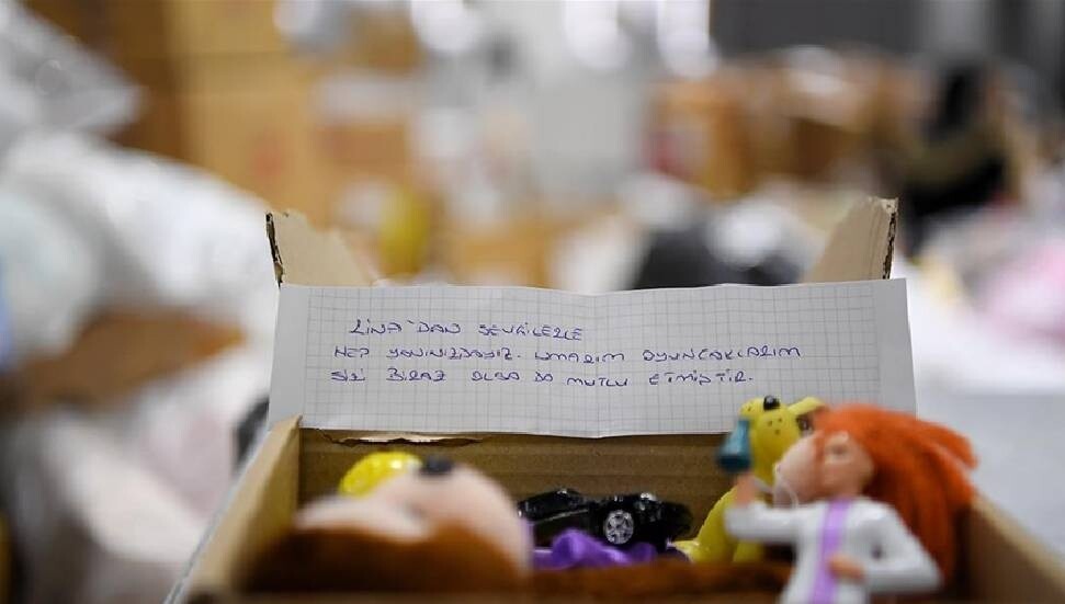 Kahramanmaraş merkezli meydana gelen ve 10 ili etkileyen depremlerin ardından Antalya'da başlatılan yardım kampanyasına oyuncaklarıyla destek veren minik Lina'nın, ailesiyle yazdığı not, görenleri duygulandırdı.