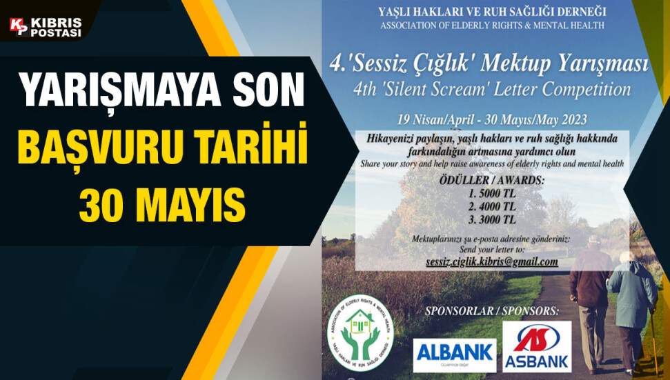 Yaşlı Hakları ve Ruh Sağlığı Derneği, 4. Sessiz Çığlık Mektup Yarışması’nın bugün başladığını duyurdu. Yarışmaya son başvuru tarihi 30 Mayıs…