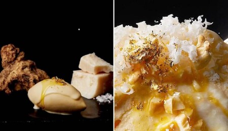 Dondurmada ayrıca reggiano parmesan peyniri ve hafif tatlı kokusu olan Japon sosu sake lees de var.