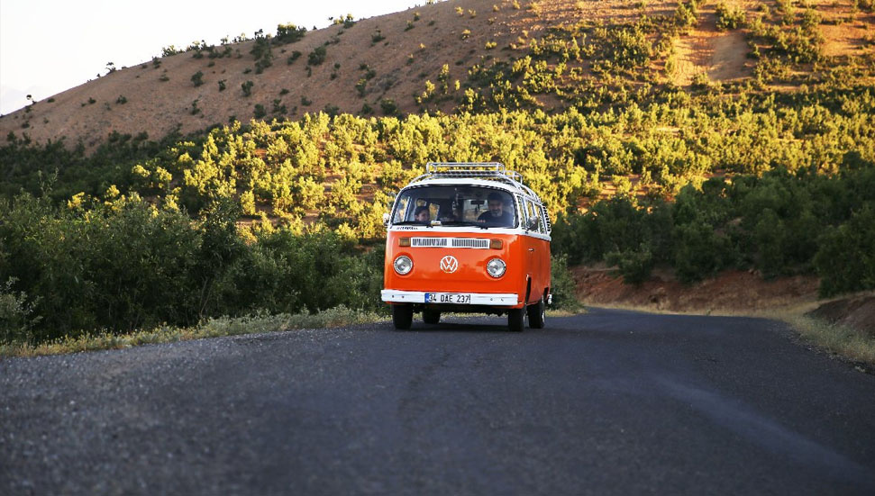 1,5 yıl önce 1976 T2 model vosvos minibüsü satın alan 41 yaşındaki Yücel Albayrak, tasarımını ve rengini değiştirdiği aracı karavana dönüştürdü.