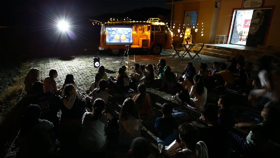 “Rewanbus” ismini verdiği vosvosuyla geçen ay zorlu yolları aşıp ilk olarak Güveçli köyünü ziyaret eden Albayrak, köy meydanında öğrencileri açık hava sinemasıyla buluşturdu.