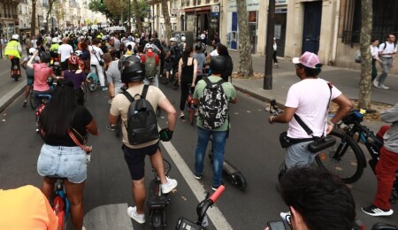 Pari Roller&Mobilites isimli derneğin düzenlediği tur, Bastille Meydanı'ndan başladı. Tura bisiklet, paten ve elektrikli tek tekerle katılanlar, Invalides Meydanı'ndan ve Eyfel Kulesi'ne bakan Champs de Mars alanından geçti.