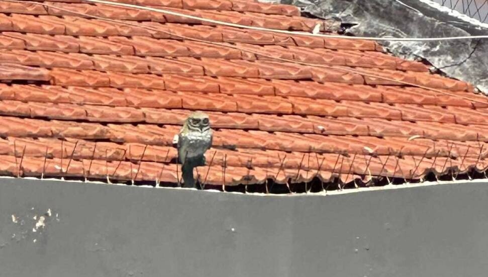 1190 Yaban Hayat Destek Hattı’na Zeytinlik’te bir binanın çatısında 3-4 gündür hareketsiz duran bir baykuş olduğu yönünde ihbar geldiğini aktaran Taşkent Doğa Parkı Direktörü Kemal Basat, “OIay arkadaşlara garip gelince fotoğraf istedik” dedi.