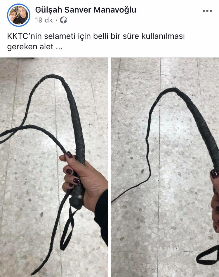 Kırbaçla foto paylaşan Sanver, "KKTC'nin selameti için bir süre kullanılması gerekir" diye yazdı...